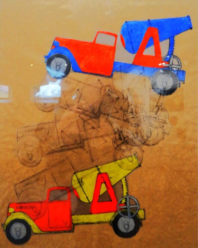 Med respekt for de fine maleflader ville jeg vælge mine motiver og teknikker omhyggeligt, så med et sideblik til amerikaneren Roy Lichtensteins værker, søgte jeg efter et lokalt og personligt bud på maleri i det der kaldtes pop-art genren. Her er et par eksempler fra forsøgsperioden: